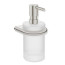 HEWI Seifenspender mit Halter, Halter aus Edelstahl, Seifenspender aus Kristallglas, Pumpenkopf aus Edelstahl, ca. 200ml 480.06.002XA